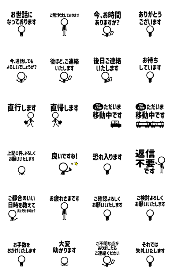 シンプルな棒人間かおまる君が、仕事・ビジネスや日常でも使えるメッセージを動いて伝えます。