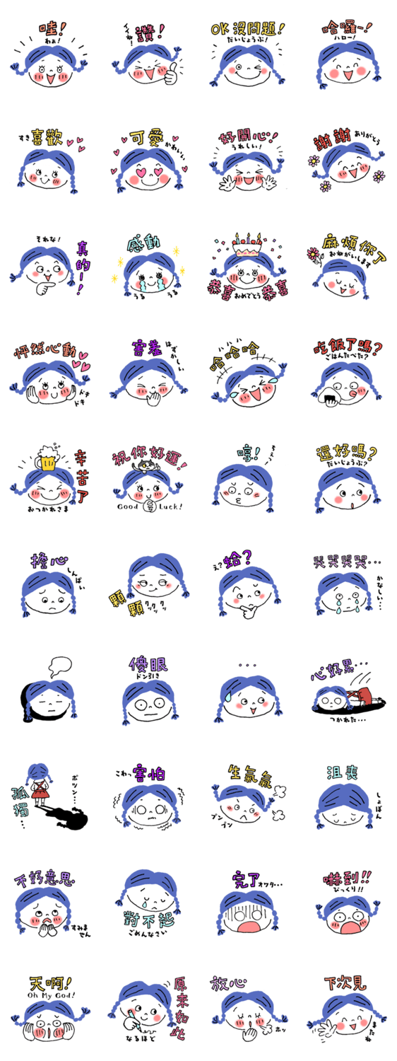 おさげちゃん《台湾華語×日本語》 -LINEスタンプマニア