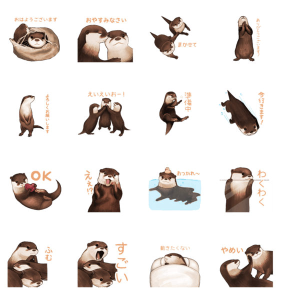 どんな場面でも使いやすい愉快なコツメカワウソ達のスタンプです。