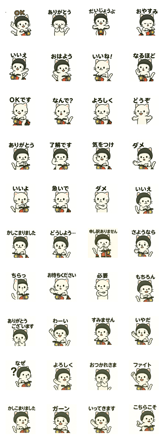 元気いっぱいのバイク猫が登場!さまざまな表情とセリフで、あなたの毎日を楽しく盛り上げるスタンプです。仕事や遊び、どんなシーンにもぴったり!