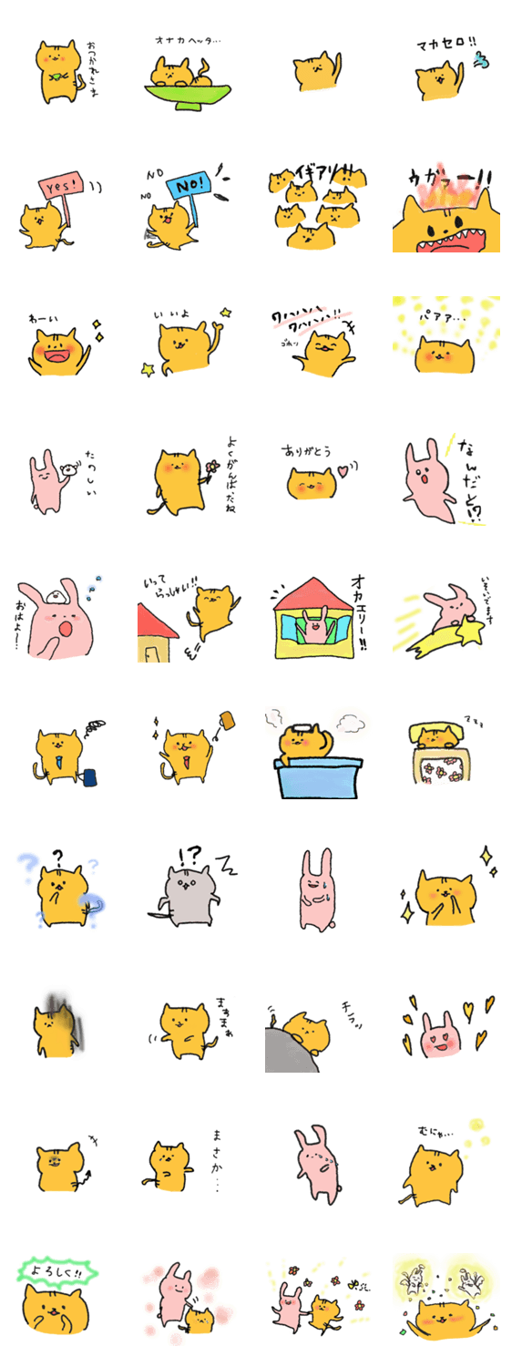 ねことうさぎと文鳥による、平凡でへんてこな日常のスタンプです。
