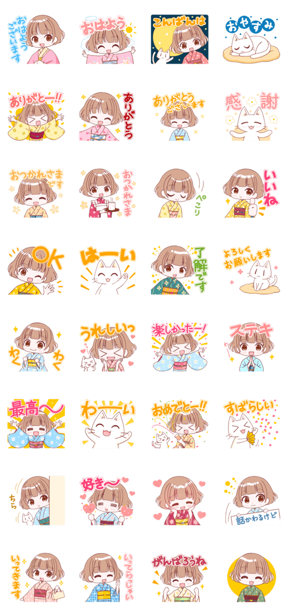 着物の女の子+猫(基本) -LINEスタンプマニア