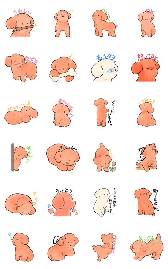 日常で使えるトイプードルのスタンプです。 モデルは愛犬のぷりんくん。