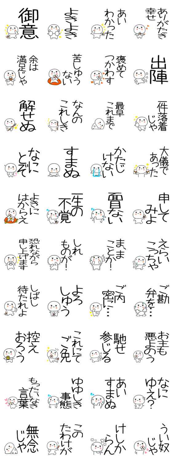 日常で毎日使える「武士語」をしゃべる武士語くんです。しろくてまるいキャラクターです。(もるきゅた作)