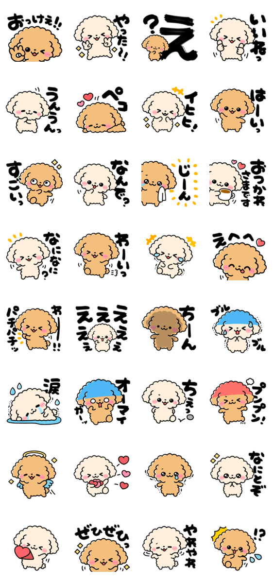 トイプードルがいろんなリアクションで気持ちを伝えます♡見やすいデカ筆文字のスタンプです。