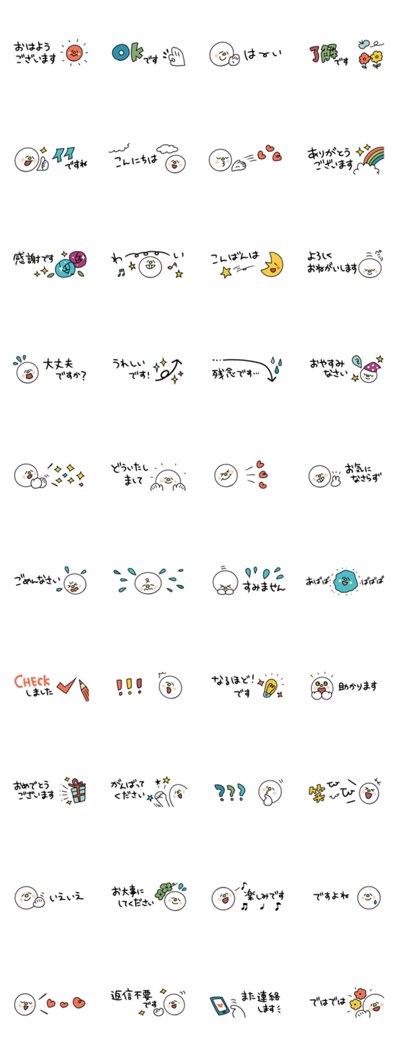 シンプルで毎日使いやすい敬語のあいさつスタンプです!レトロ風な配色。絵文字Verもあります。省スペース/かわいい/日常/白ふち付き