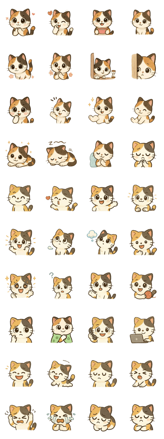 For those who love calico cats, Beautiful pictures of cute cats. Calico Cat, or Lucky cat, can be used instead of text or feelings in conversations.