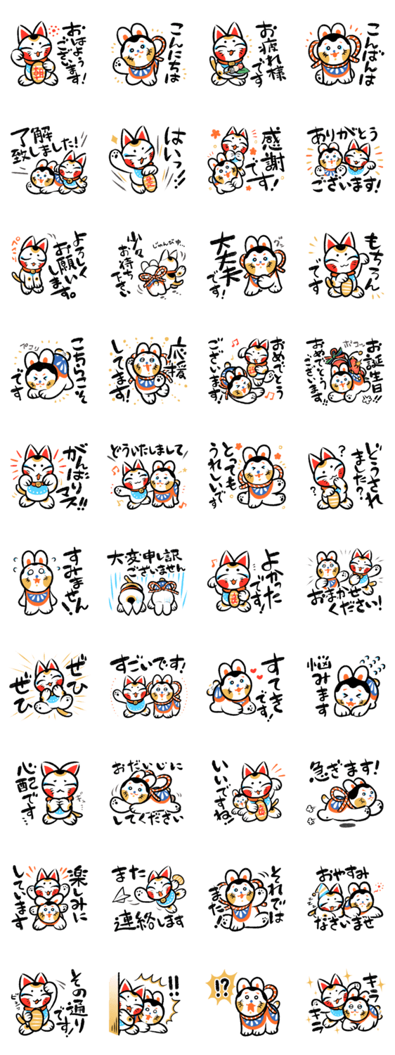 ルンルンはりことおっとりマネキ。の敬語スタンプ! あなたの幸せをのんびりめでたく見守っています。 はっきり/見やすい/筆文字/和風/使いやすい/カジュアル/家族/友達