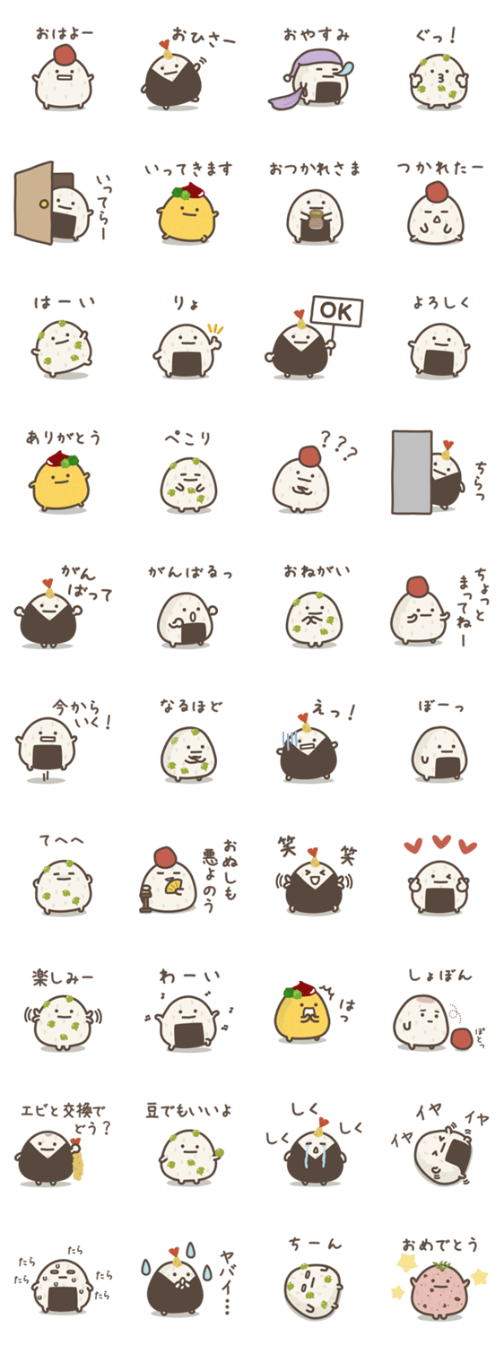 ゆる~いおにぎりたちの毎日使えるスタンプです♪
