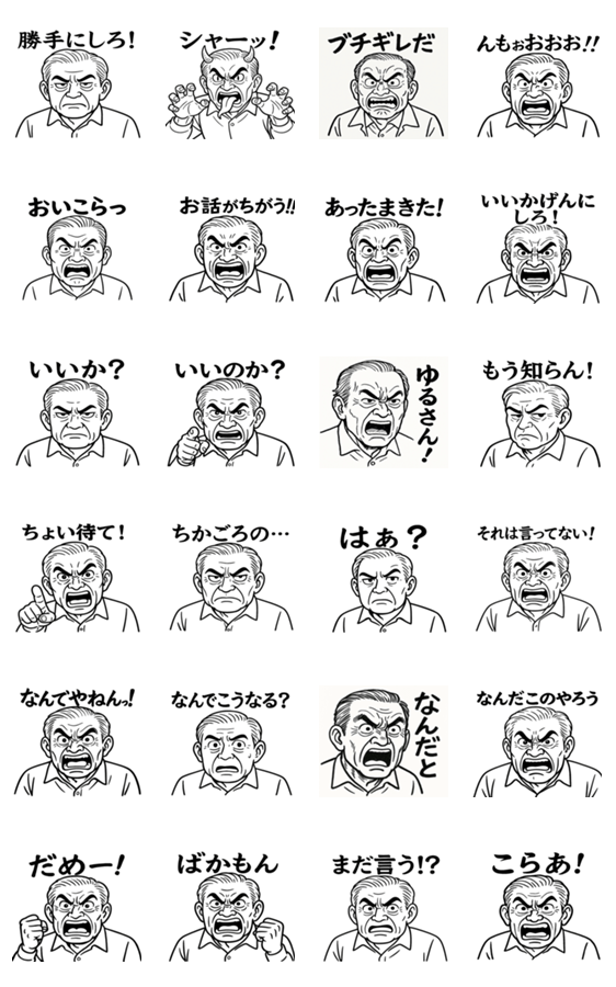 怒りをぶつけるスタンプ登場!叫ぶ、睨む、プンスカする“怒りおやじ”が日常のイライラを全力で代弁!セリフも感情も盛りだくさん!
