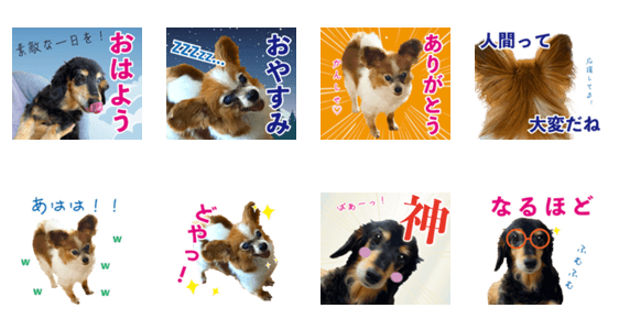 愛犬達のオリジナルLINEスタンプ。パピヨンとミニチュアダックスフンド。