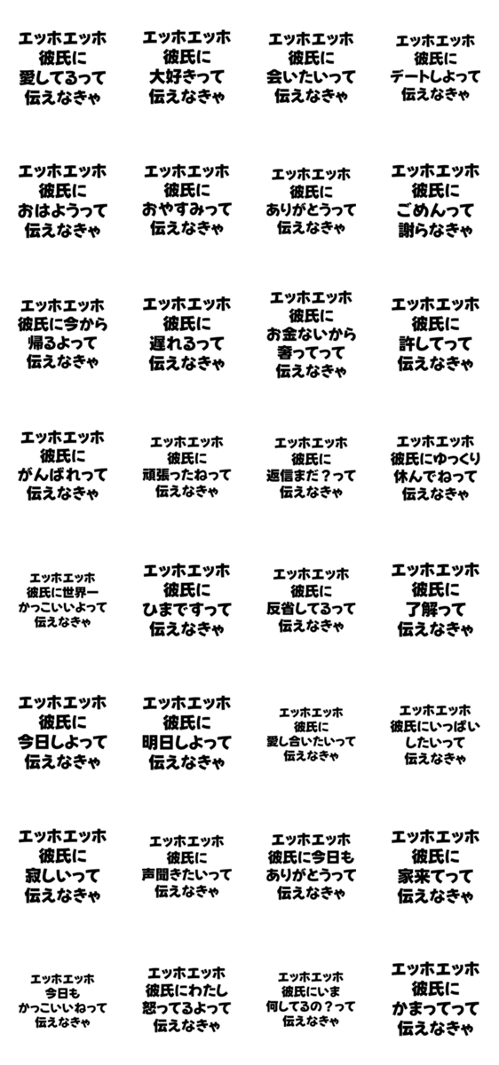彼氏に送りやすいネットミームえっほえっほスタンプです。ネタっぽく使えるのでおもしろ便利です。