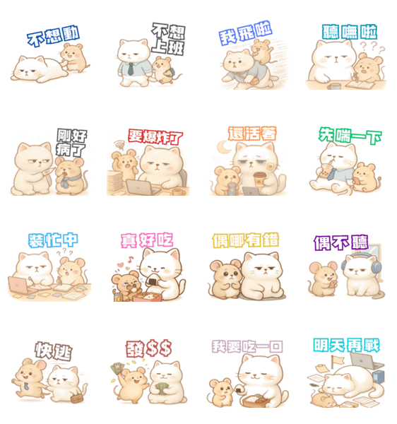 | スタンプ説明 | A set of cute and relatable office-life stickers featuring U-Cat and Z-Mouse. Perfect for daily chats! |