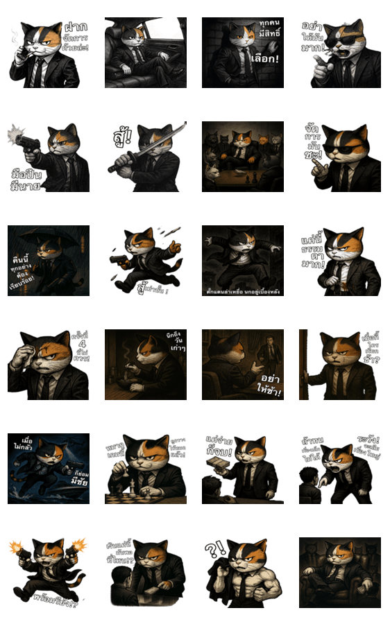 | スタンプ説明 | Meet "Money", the Calico cat who became the big boss of the underground world in a cool mafia style! For those who want to send brutality with class in the chat |