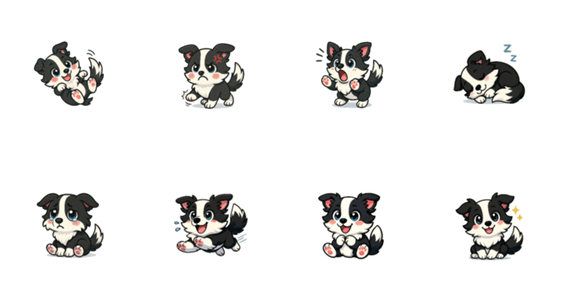 キュートなボーダーコリーのスタンプがいっぱい!ふわふわ癒し系で、日常の会話がもっと楽しくなるワン!