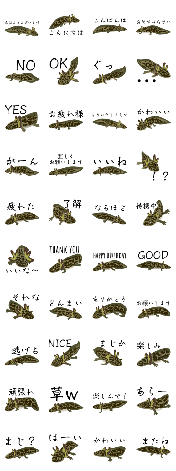 ウーパールーパー(メキシコサラマンダー)のショートボディ個体のLINEスタンプです(マーブルversion)