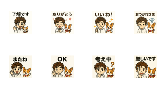 | スタンプ説明 | ちび男子とチワワがゆるっと登場!「ありがとう」「了解です」など日常で使える癒し系スタンプ。毎日のトークがちょっと楽しくなる♪ |