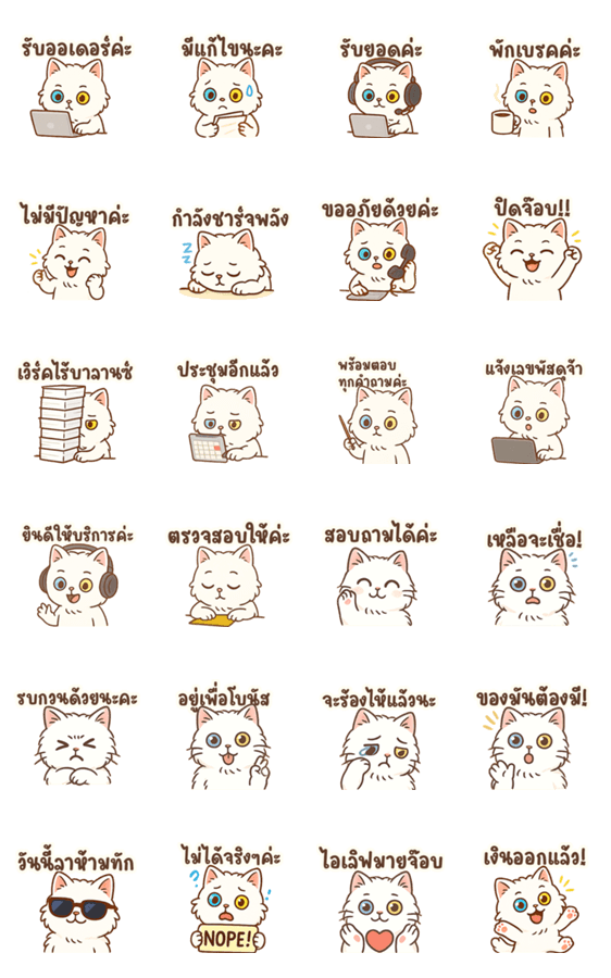| スタンプ説明 | Yuki is a fluffy Persian cat with one blue eye and one amber. Quiet and dreamy, she feels like a magical soul wrapped in soft white fur. |