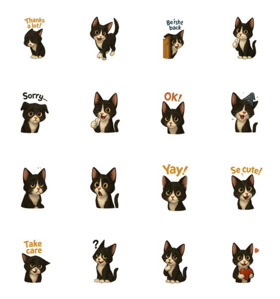 “Meet Tux the cat! Express every mood with this cute and charming black-and-white kitty. Perfect for daily chats—fun, fluffy, and full of personality!”
