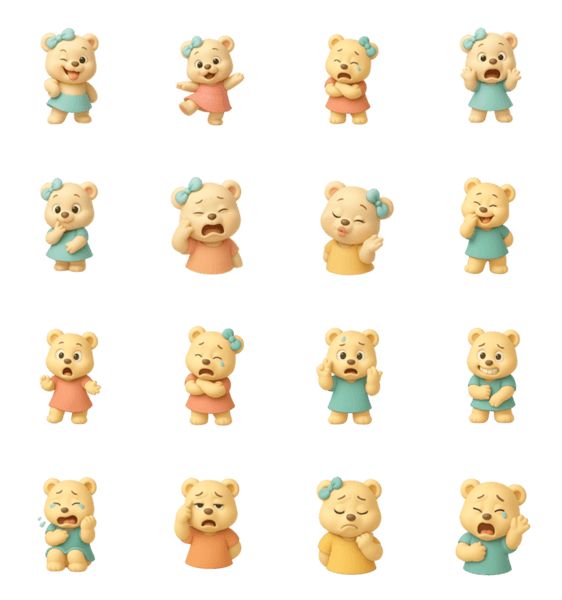 3歳のいたずら好きなくまちゃん!喜怒哀楽たっぷりのスタンプで、毎日の会話がもっと楽しくなるよ。