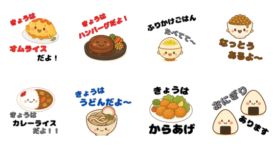 おいしいごはんに大喜び♪毎日の食事スタンプにぴったりのかわいいスタンプです。