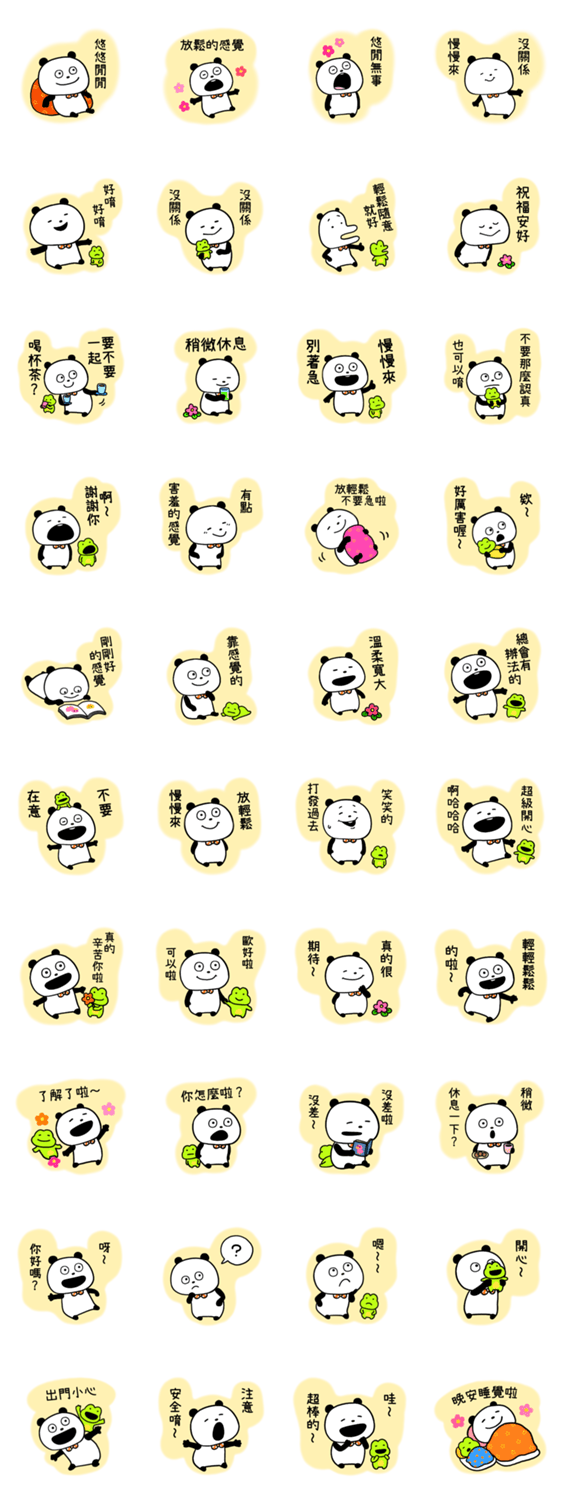 | スタンプ説明 | Meet the relaxed panda from team "GOKIGEN PANDA"! Let's relax with the panda! |