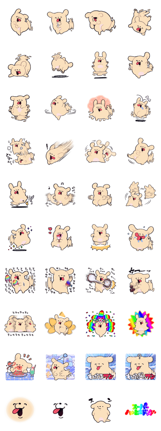 スタンプ説明 犬は今日もスーパーハッピーです。