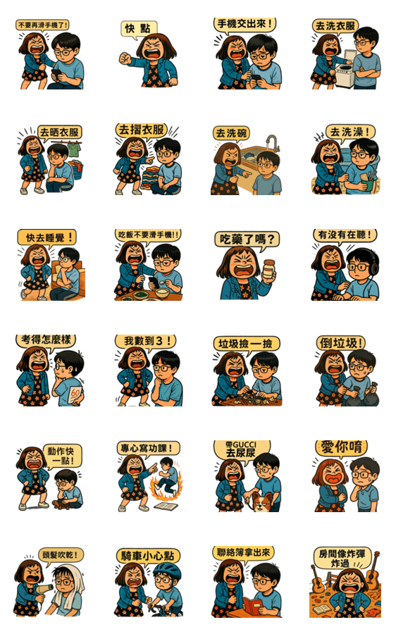 | スタンプ説明 | Things a bratty kid's mom says on a daily basis. |