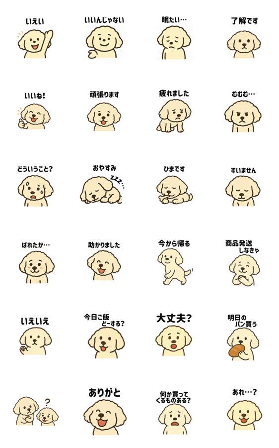 トイプードルの愛嬌と、マルチーズの気まぐれをあわせ持った、もふもふ界のカリスマ。 かわいさ×シュールさが欲しいあなたに捧ぐ、スタンプ界の“もふの申し子”です。