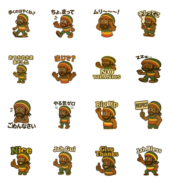 | スタンプ説明 | 歩くのはやくねっ!って言いたくなる、ラスタマンのスタンプ。 |