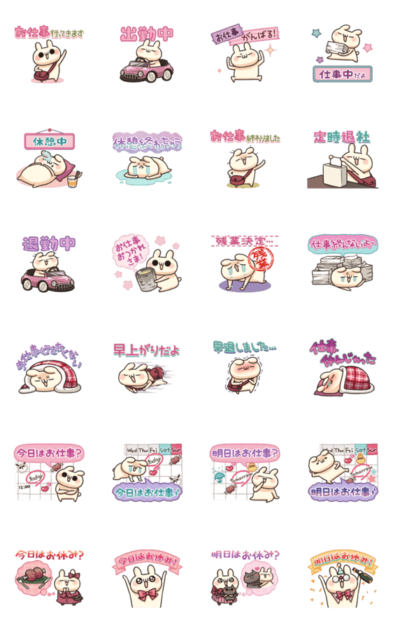 「うさぎのしろ」の動くスタンプ第6弾の登場です!毎日のお仕事を頑張る方々にとっても楽しく使っていただけます!