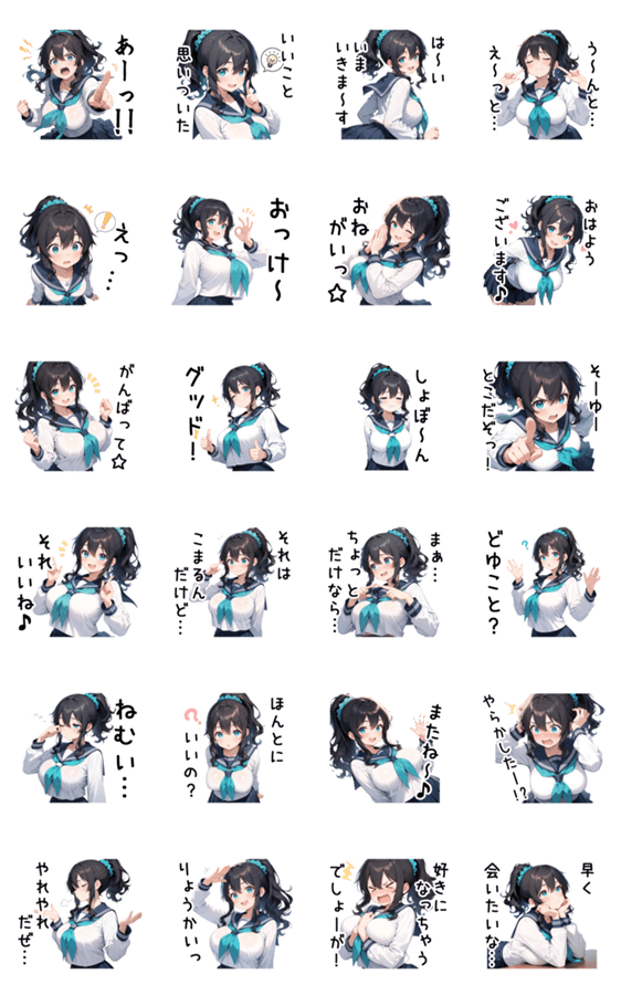 ポニテちゃんのスタンプです。 使い易そうなものを中心に作りましたのでよろしければどうぞ。