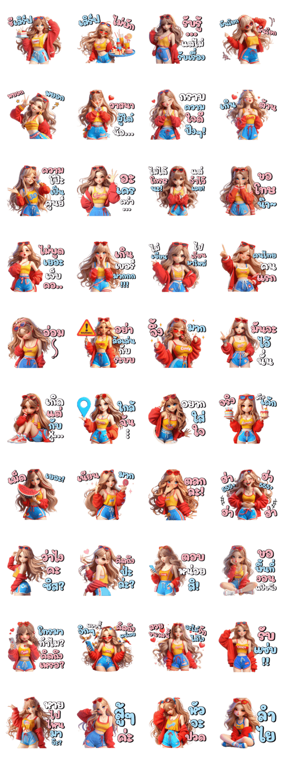 | スタンプ説明 | A confident and cute girl with a bright and fashionable style. She uses popular words that are popular among Thai teenagers. |