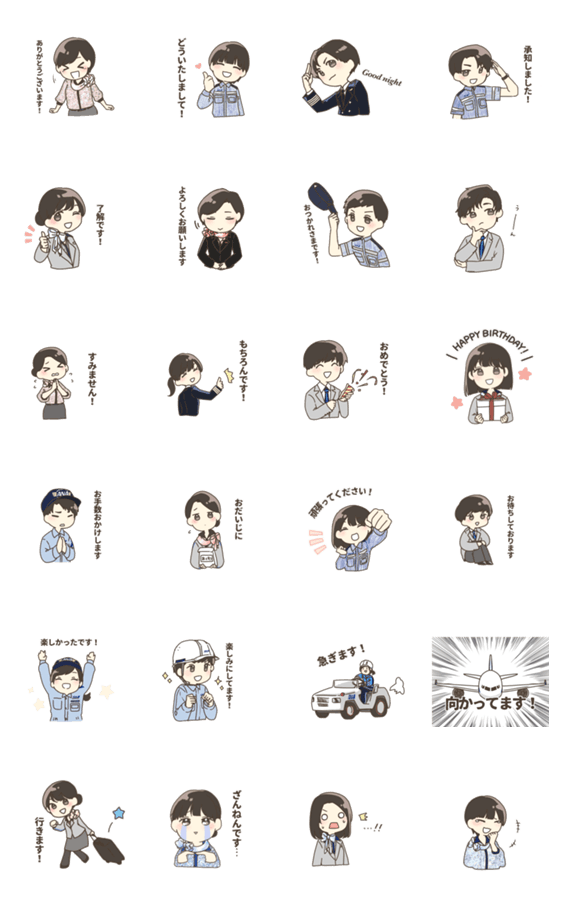 | スタンプ説明 | ANA公認LINEスタンプの第2弾が登場しました! かわいくて使いやすいイラストがたくさんあります♪ ANAで働くスタッフと、日常会話を盛り上げてください! |