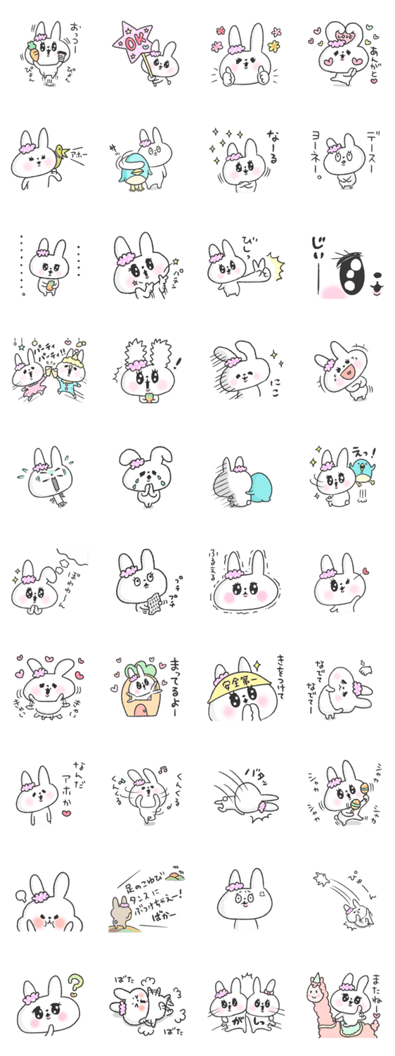 女子なうさぎのスタンプです。ちょっぴりあざとさがあります。ペットのペンギン付き。家族、友達、恋人との会話に使ってください。