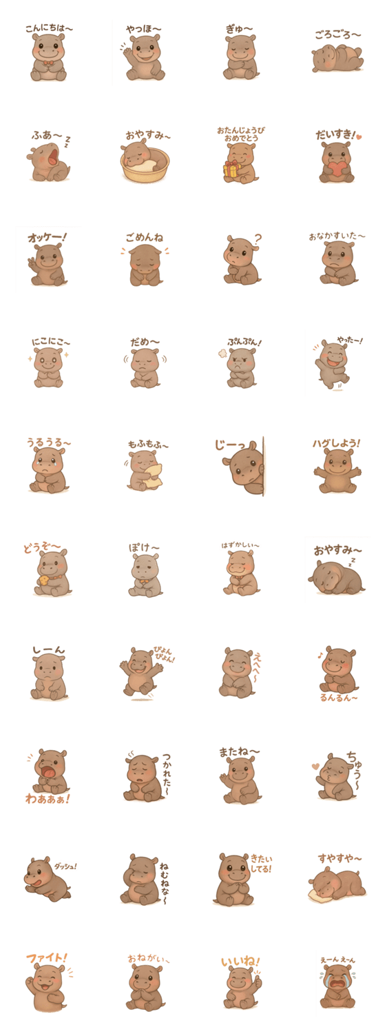 | スタンプ説明 | A soft, cuddly hippo bringing sweet vibes to your messages! |