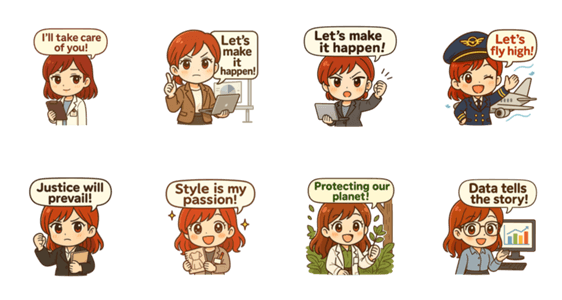スタンプ説明 マリーの憧れの職業を表現したスタンプセットです。