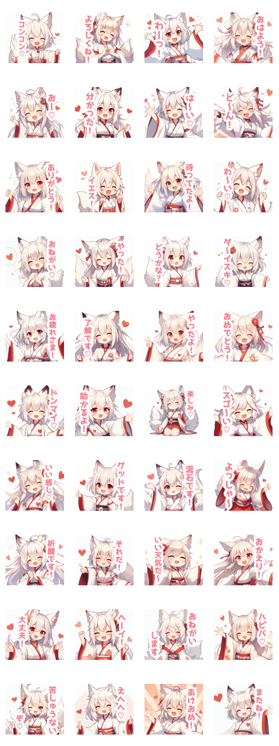 巫女服の白狐の女の子スタンプ -LINEスタンプマニア