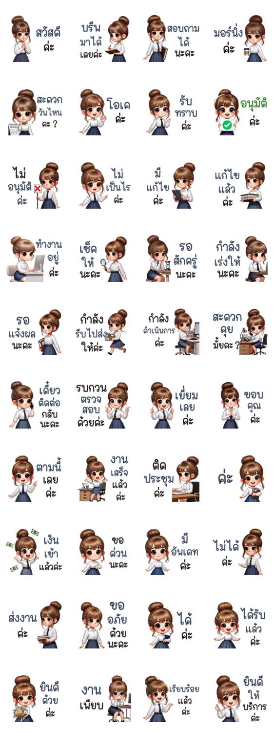 | スタンプ説明 | Erin : Working words, office girl , working life , sale person, work work work |