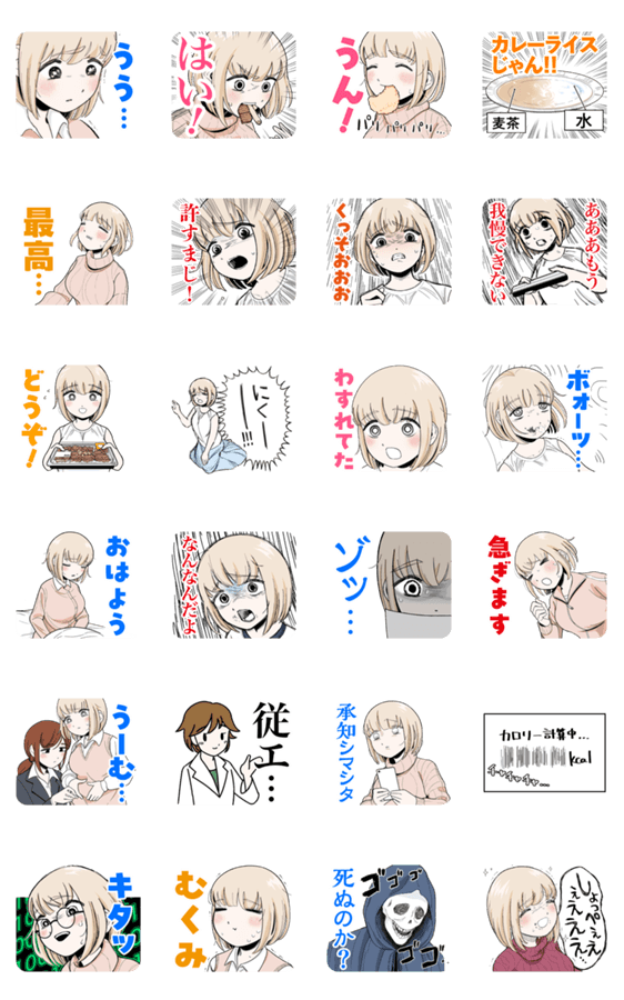『ドカ食いダイスキ! もちづきさん』がLINEスタンプになりました★ 人気のシーンを集めたスタンプ第2弾です。オナカスイタ!