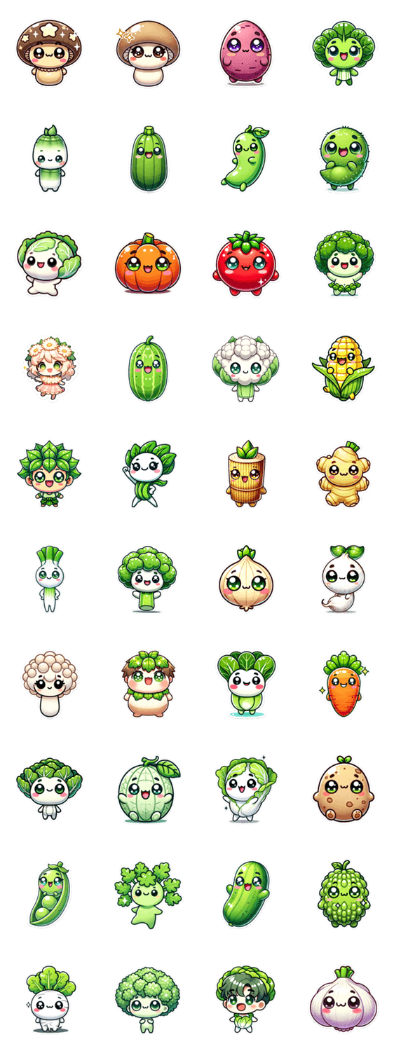| スタンプ説明 | 超可愛い野菜擬人キャラクター、文字なしでコラージュできる |