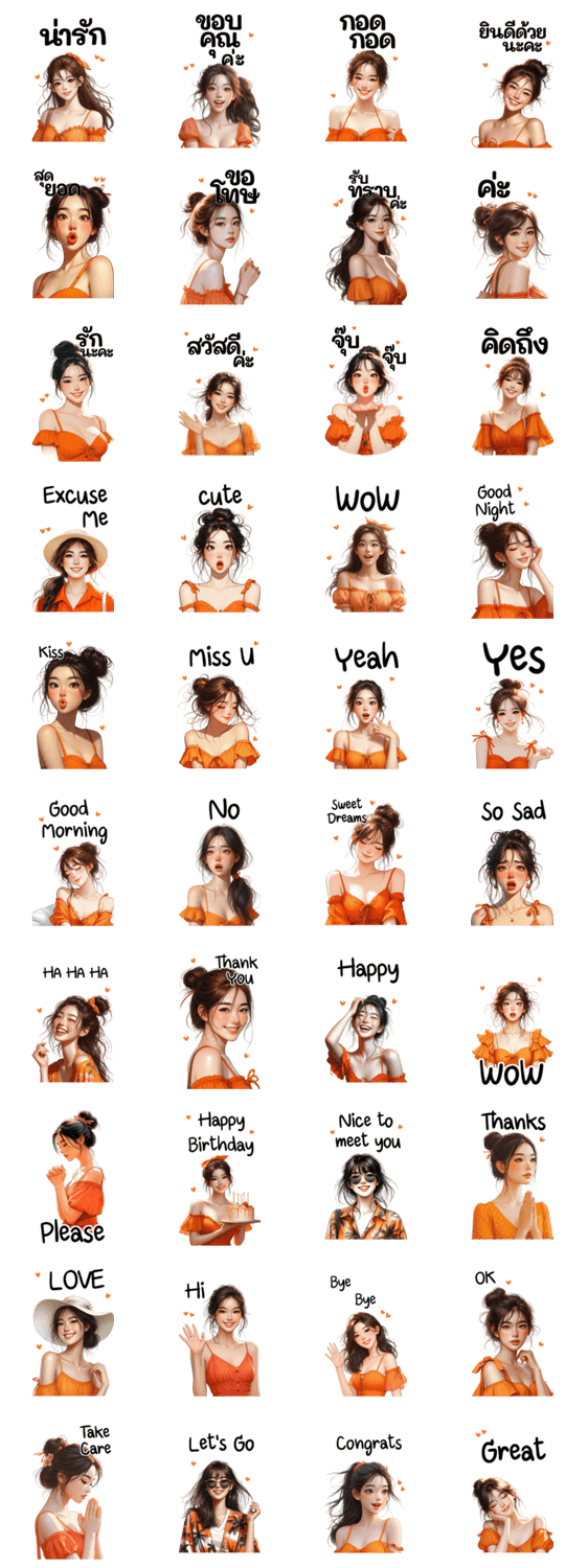 Cute girl in orange dress These stickers will show up extra large in chats.