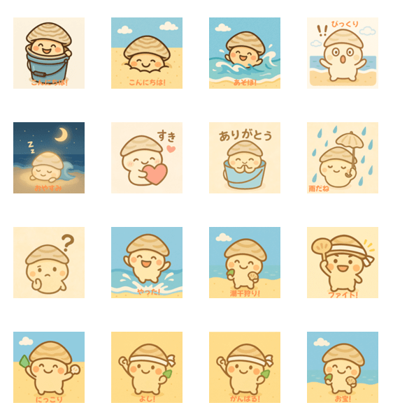| スタンプ説明 | 「しおまる」と一緒に楽しい海の冒険へ出発!びっくり顔や応援ポーズなど、日常にぴったりの可愛い表情がいっぱい♪ |