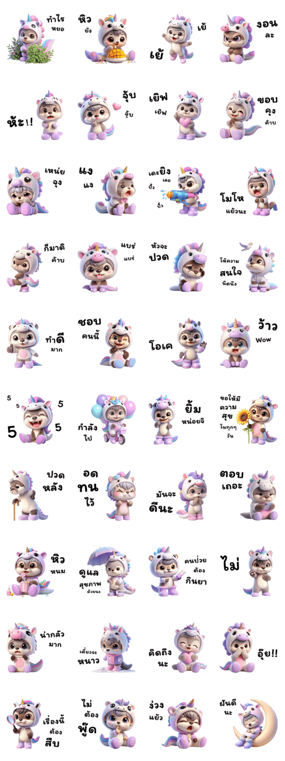 Dino: Cute Otter in Unicorn Costume -LINEスタンプマニア