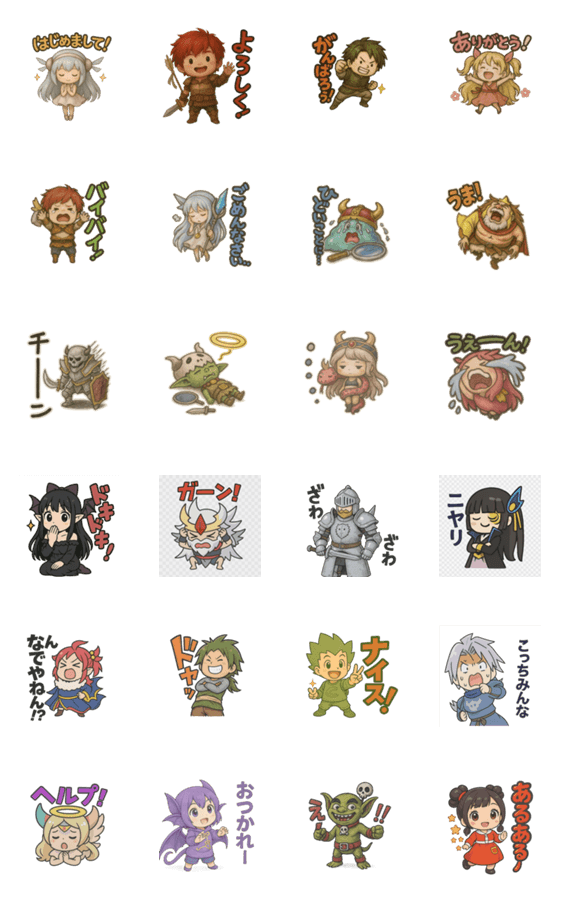 ファンタジーの世界からやってきた仲間たち! 日常の会話をもっと楽しく彩る、心温まるあいさつスタンプです。