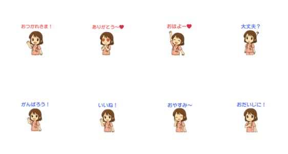 ちびナースが日常のあいさつや励ましをお届け!全8種類のスタンプで、ほっこりさせてくれます