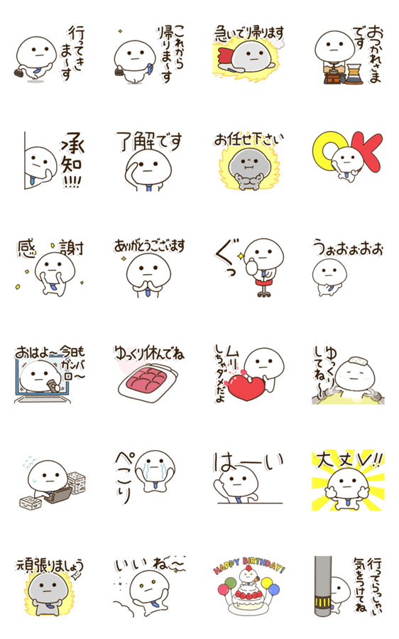 毎日頑張るお父さん(パパ,祖父)が大事な家族との連絡にとっても使いやすい日常スタンプ。あまりスタンプを使わないお父さんにもコミュニケーションの第一歩に✨だいふくまる