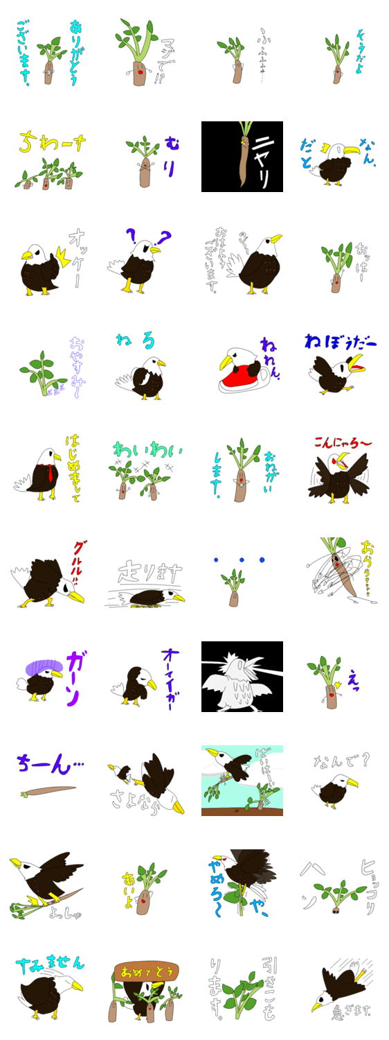 元気な鷲とごぼうの日常です。 プライベートでこれらのスタンプを使うことができます。