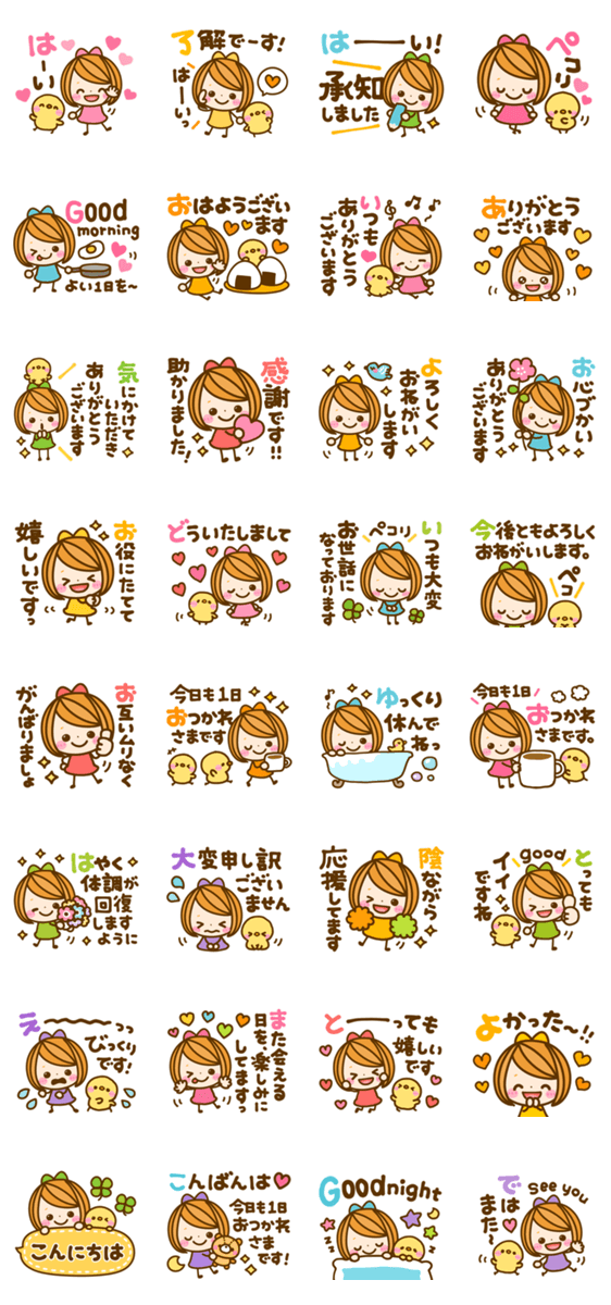 大人可愛いカラフルな女の子の丁寧な長文敬語スタンプです♪