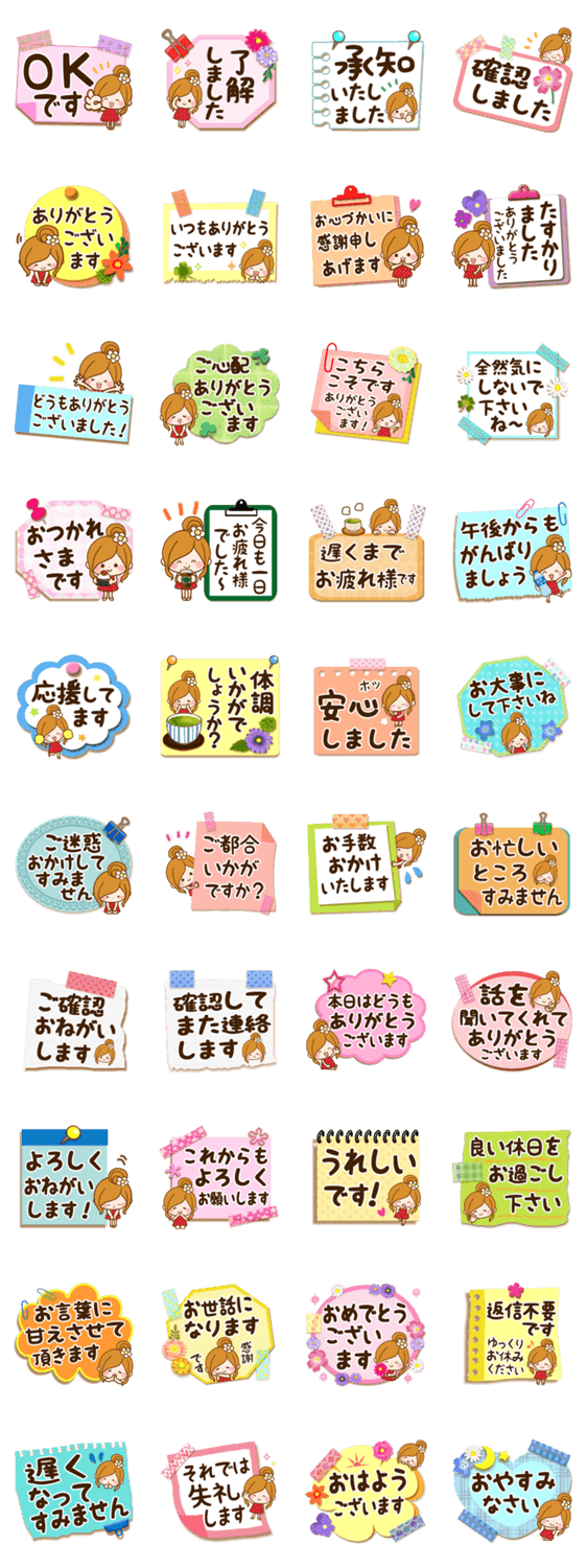 思いやりのある優しい言葉がいっぱい♡便利でかわいいメモの形のスタンプです♪家族やお友達、お仕事関係やママ友、PTA、学校関連などの連絡にも♡一年中ず~っと使えます